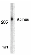 Source : Acinus antibody was raised against a peptide corresponding to amino acids 994 to 1009 of human AcinusL, 267 to 282 of human AcinusS’, or 236 to 251 of human AcinusS, which are identical to those of mouse Acinus. The selected antigenic sequence is located near the N-terminus of active peptide p17.
