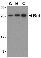Source : Bid antibody was raised against a peptide corresponding to 14 amino acids near the carboxy-terminus of human Bid.
