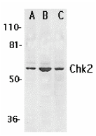 Application : Chk2 antibody can be used for detection of Chk2 by Western blot at 0.5 to 1 µg/ml.A 60 kDa band can be detected.