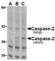 Source : Caspase-2 antibody was raised against a 16 amino acid peptide from the amino-terminus of human Caspase-2.