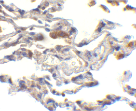 Below: Immunohistochemistry of cIAP in human lung cells with cIAP antibody at 10 µg/ml.