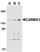 Source : CARMA1 antibody was raised against a synthetic peptide corresponding to amino acids at the C-terminus of human CARMA1.