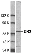 Application : DR3 antibody can be used for Western blot at 1:500 to 1:1000 dilution. A 59 kDa band should be detected and has no cross reaction to other death receptors.