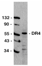 Application : DR4 antibody can be used for detection of DR4 expression by Western blot at 1:500 to 1:1000 dilution. A 57 kDa band should be detected.