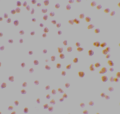 Below: Immunocytochemistry staining of MOLT4 cells using DRAK1 antibody at 2 µg/ml.