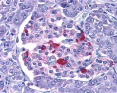 Below: Immunohistochemistry of EndoG in human pancreas with EndoG antibody at 15 µg/ml.