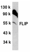 Application : FLIP antibody can be used for the detection of FLIP by Western blot at 1:500 to 1:1000 dilution. 55 kDa band can be detected. FLIP has short form (FLIPS) and long form (FLIPL) and antibody recognizes the FLIPL only.