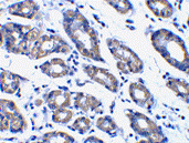 Below: Immunohistochemistry of Noxa in human stomach tissue with Noxa antibody at 1 µg/ml.