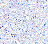 Below: Immunohistochemistry of PD-1 in human brain tissue with PD-1 antibody at 5 µg/ml.