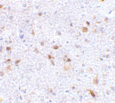 Below: Immunohistochemistry of PDL-2 in mouse brain tissue with PDL-2 antibody at 2.5 µg/ml.