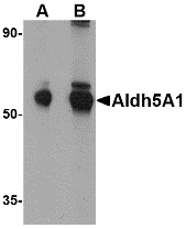 Source : Aldh5A1 antibody was raised against a 22 amino acid peptide near the carboxy terminus of the human Aldh5A1.