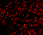 Below: Immunofluorescence of ApoA1 in human liver tissue with ApoA1 antibody at 20 µg/ml.