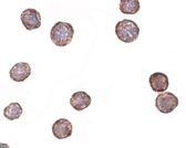 Below: Immunohistochemistry of CXCR4Lo in HeLa cells with CXCR4Lo antibody at 2 µg/ml.