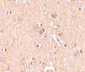 Below: Immunohistochemistry of MED28 in human brain tissue with MED28 antibody at 2.5 μg/ml.
