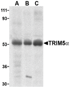 Application : TRIM5 alpha antibody can be used for detection of TRIM5 alpha by Western blot at 1 to 2 µg/ml.A band at approximately 55 kDa can be detected.