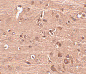 Below: Immunohistochemistry of Gle1 in mouse brain tissue with Gle1 antibody at 2.5 µg/ml.