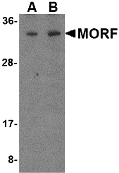 MORF4 antibody was raised against a 18 amino acid peptide from near the amino terminus of human MORF4.