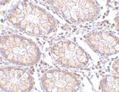 Below: Immunohistochemistry of PTK7 in human colon tissue with PTK7 antibody at 5 µg/ml.